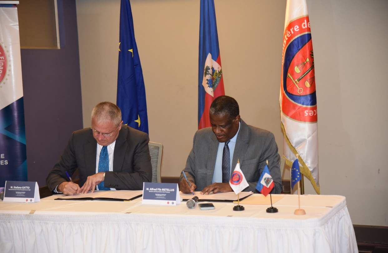 La signature de l’accord s’est tenue à Port-au-Prince entre le ministre haïtien de l’Économie et des Finances, Alfred Fils Métellus, et l’ambassadeur de l’Union européenne en Haïti, Stefano Gatto.