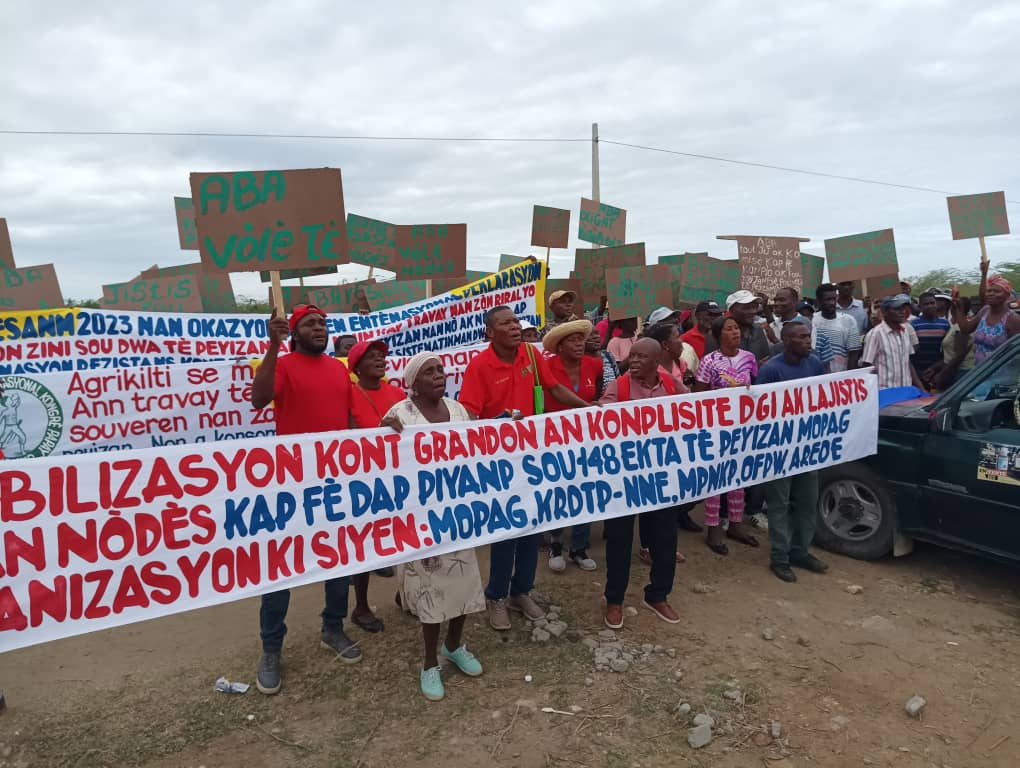 Selon les protestataires, ‘‘dans le Nord-Est, des actes criminels sévissent sur les terres des paysans, engendrant de nombreuses violences dans plusieurs communes du département. Les autorités, complices voire acteurs des gangs violents, expulsent de force les paysans de leurs terres et de leurs maisons. Depuis la première version du Plan International de Transformation Paysanne (PH TK) en 2010, le gouvernement illégal et illégitime d’Ariel Henry n’a de cesse de spolier les terres des paysans, notamment à Trou-du-Nord, à Caracol, à Terrier-Rouge, à Grand- Bassin, à Ouanaminthe, à Ferrier, à Fort-Liberté entre autres.